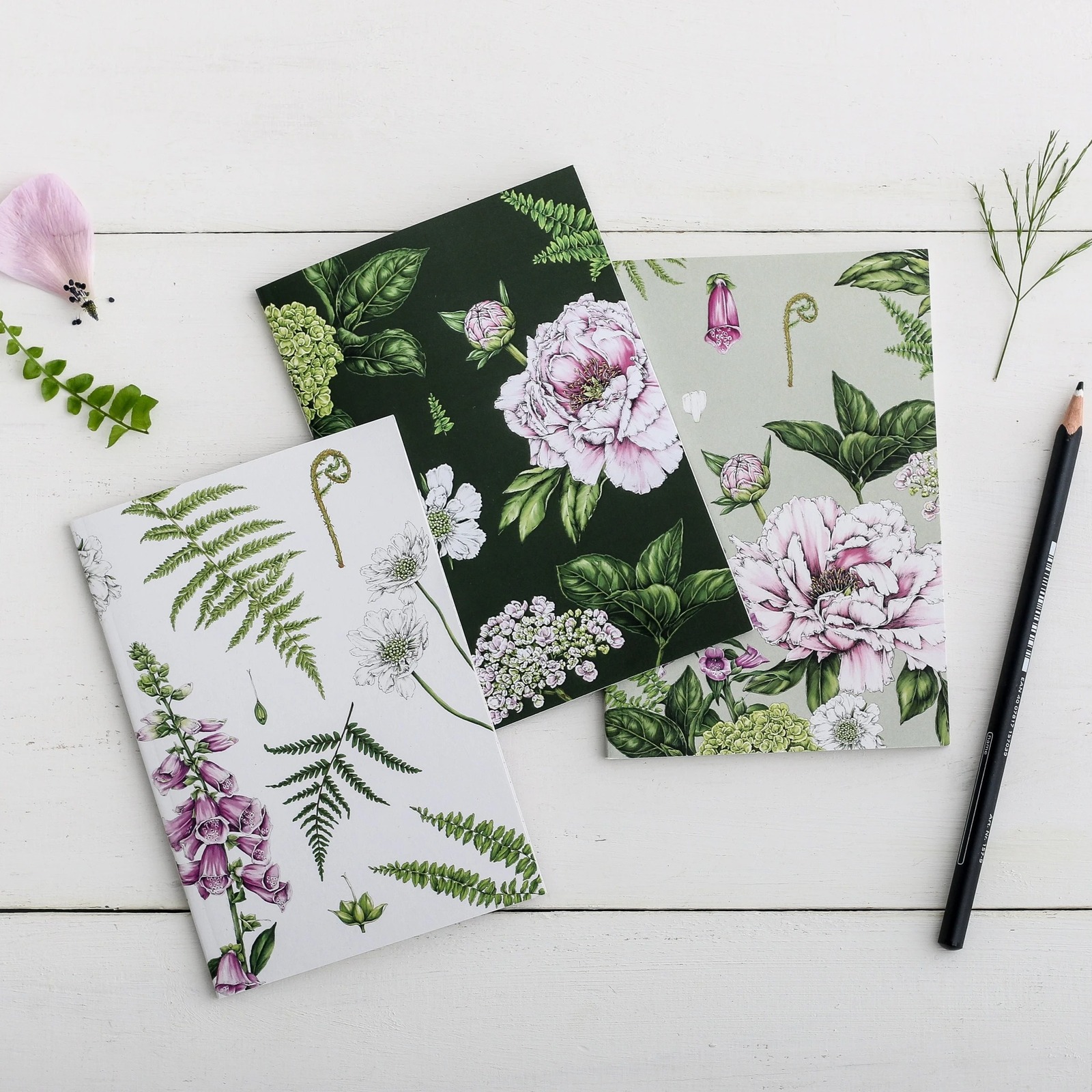 A set of 3 x A6 Notebooks with the intricately drawn designs from the Summer Garden range by Catherine Lewis Design, perfect for lists / planning and thoughts. 300gsm fully printed cover.