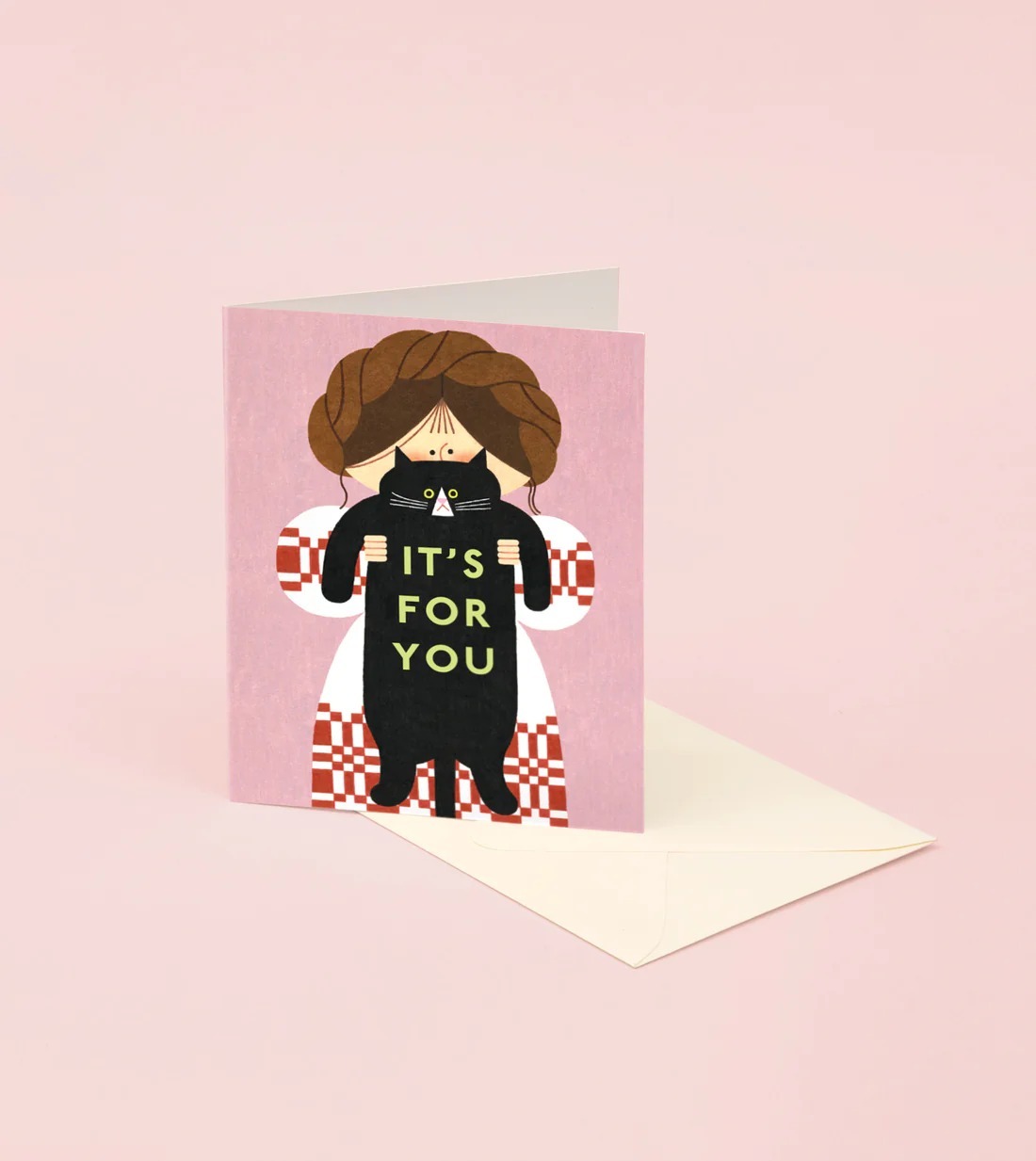 Wish someone a happy birthday with this whimsical card featuring a cute chubby cat with cream all over his mouth and playing dumb.