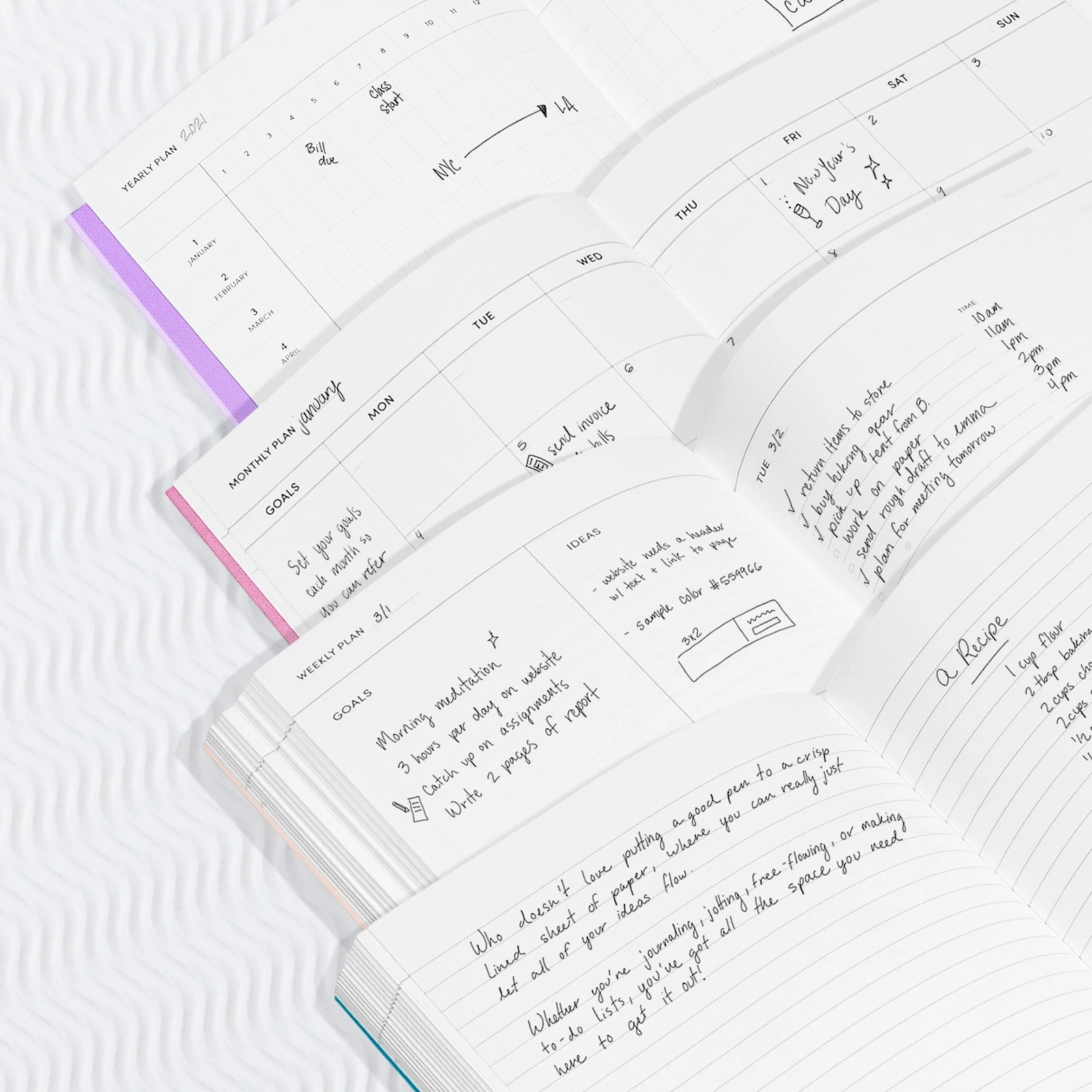 This bestselling Concept Planner is to encourage goal-oriented and idea-driven scheduling. There's designated space for your goals and ideas at the start of each open-dated yearly, monthly and weekly section, plus plenty of room for notes and to-do lists. Smyth Sewn binding lies flat when open and a durable, fabric-like cover is built to last. Environmentally friendly tree-free paper. Smyth Sewn binding. Yearly, monthly, weekly and notes sections.
