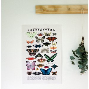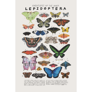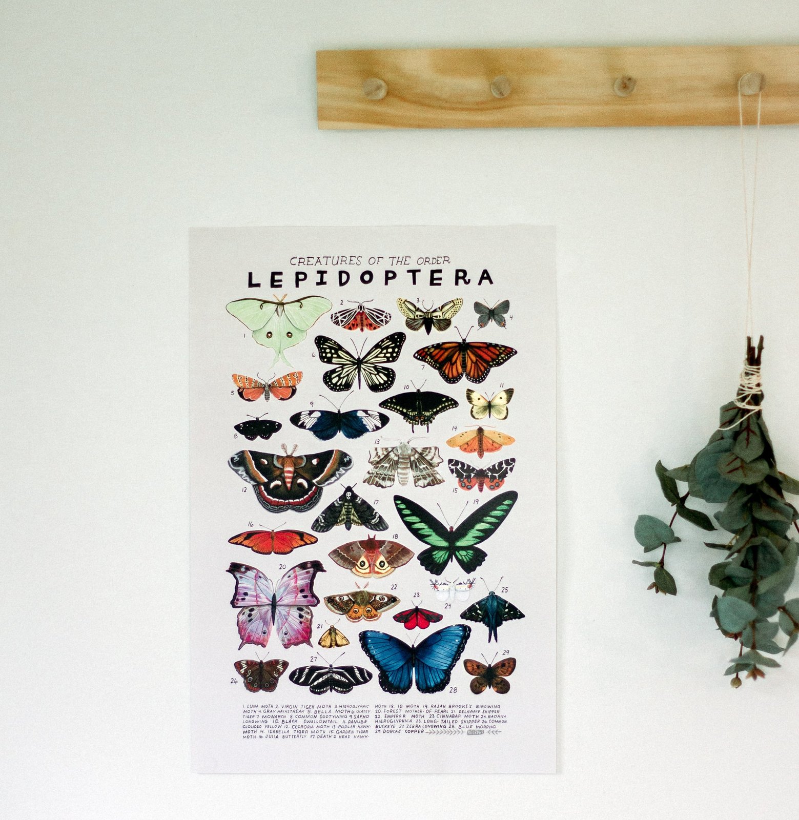 This poster chronicles 29 beautiful butterflies, moths, and skippers from the taxonomic order Lepidoptera. Printed in Minneapolis on acid free 80# Mohawk Superfine cover. Art print of an illustration by Kelsey Oseid.