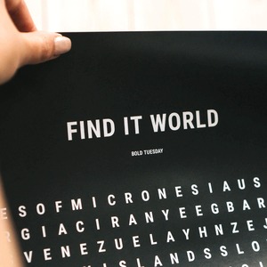 It's a mess of letters. All 196 countries of the world are in there. Somewhere. Find and colour the ones you've visited. Or leave it as it is. It's your poster. Made in Estonia.