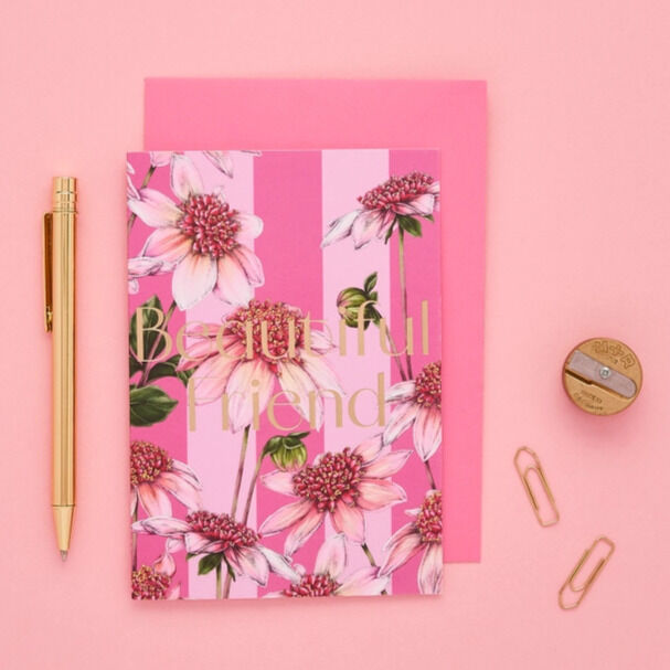 A6 Luxury Botanical Greeting Card with a Pink envelope.