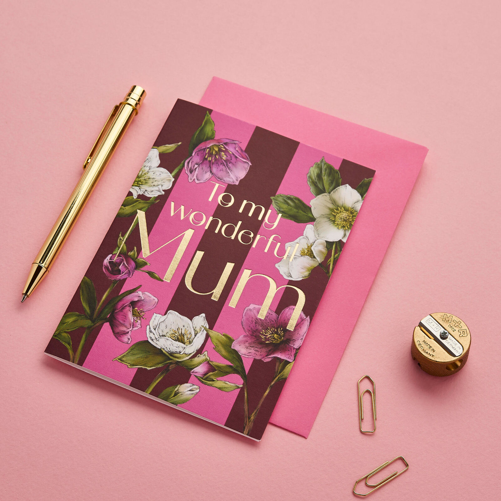 A6 Luxury Botanical Greeting Card with a Pink envelope.