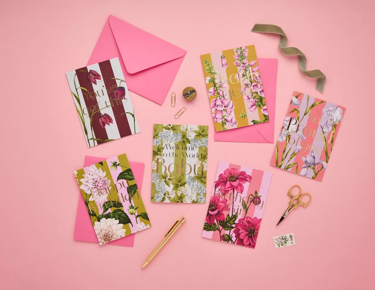 A6 Luxury Botanical Greeting Card with a Pink envelope.