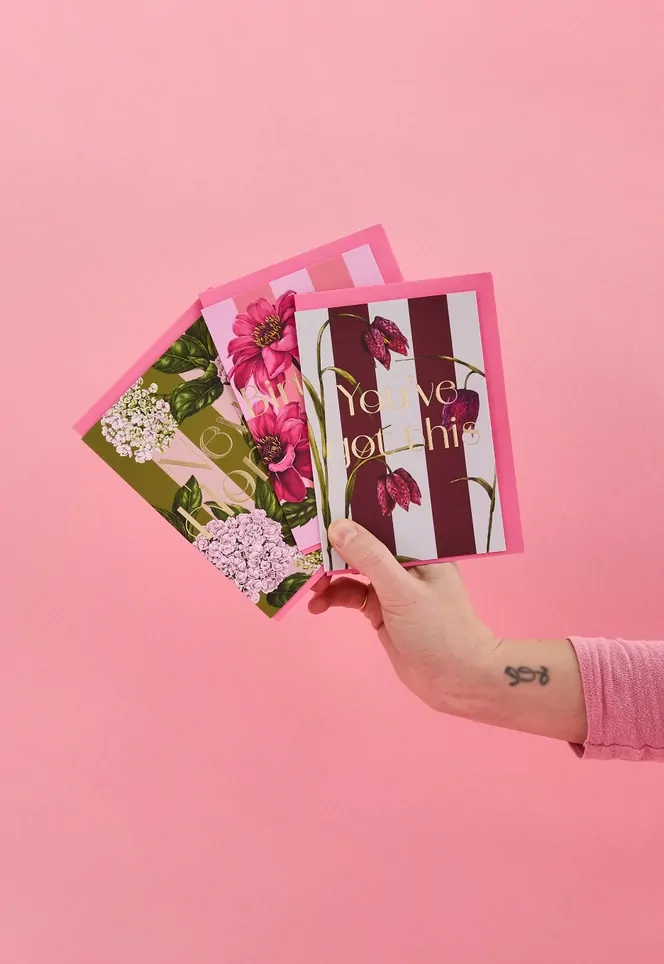 A6 Luxury Botanical Greeting Card with a Pink envelope.