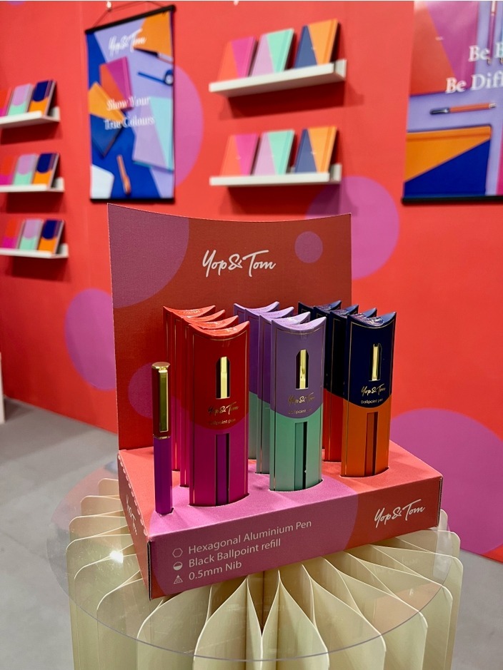 Cardboard display holding 12 pens plus 1 sample/tester.