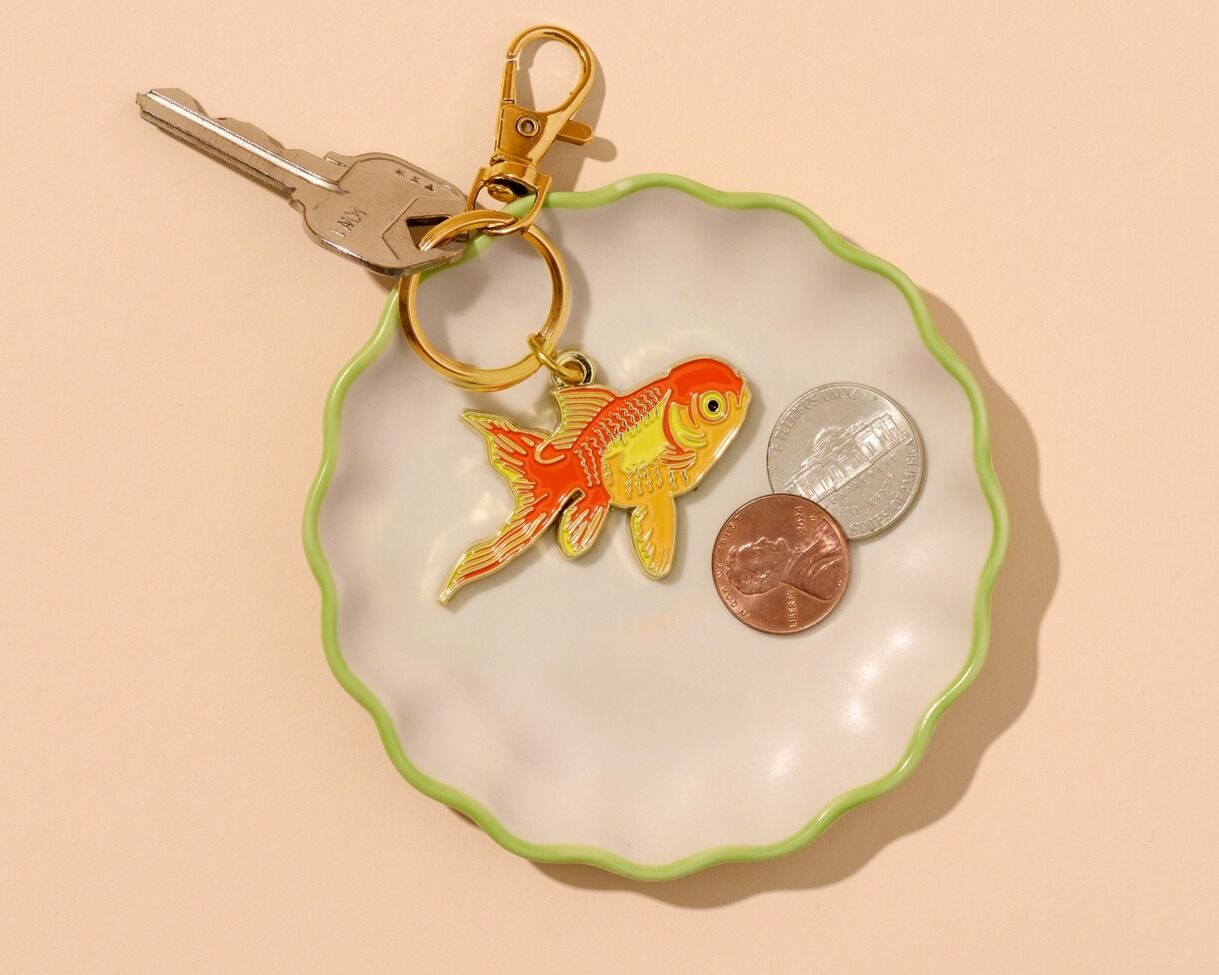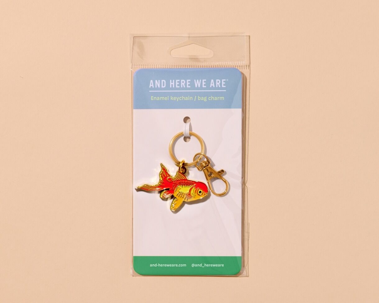 Soft enamel keychain with lobster clasp designed and packaged in Columbus, USA.