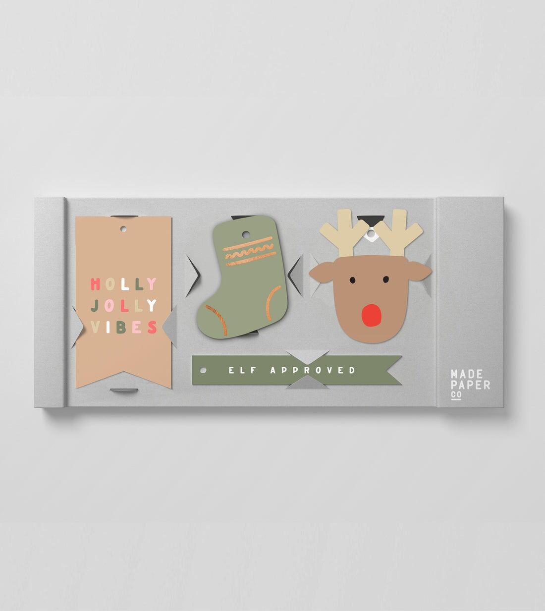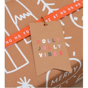 Quantity: 20 gift tags (4 kinds). Colours: pine green, tan, neon coral, neon pink, white, black. Finishes: foil, neon. Stock: 350gsm white uncoated recycled paper. Tag sizes: Varied. Includes 300cm of brown kraft recycled paper string inside pack.