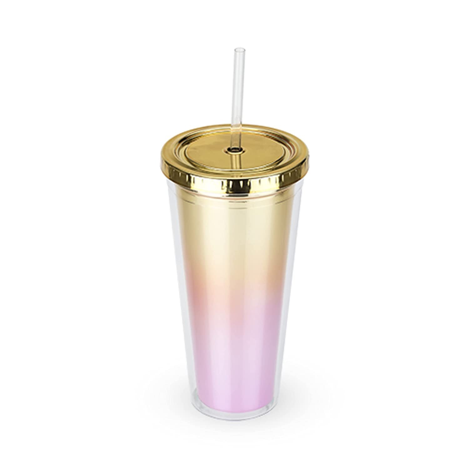 Dress up what you're sipping down with our glitzy on-the-go tumbler in Bougainvillea metallic ombre. The perfect accessory for every summer occasion from boating excursions to patio parties is drop and spill proof. What's not to like here?!