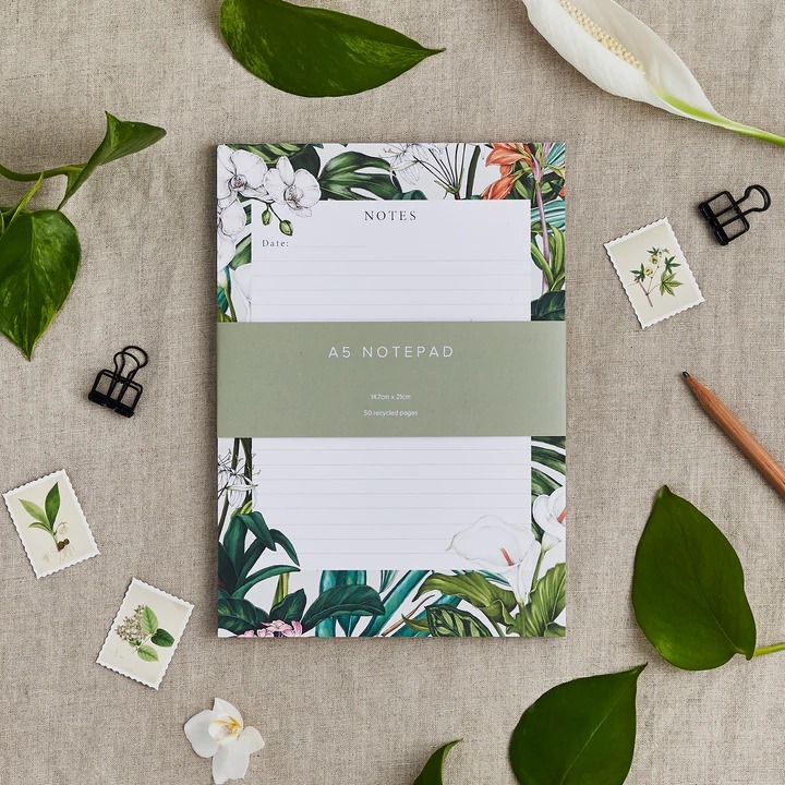 A luxury A5 Notepad with intricately drawn florals from the Palm House Tropics range. Stay organised at home, in the garden or in work with this useful A5 notepad.