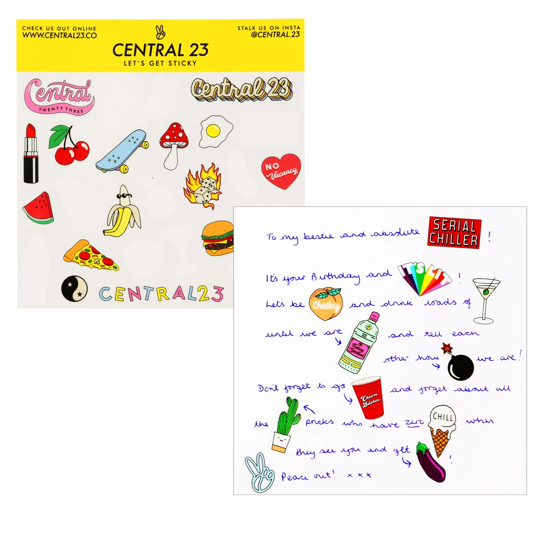 Printed on thick 300gsm card. It comes with a matching, high quality envelope and is all made with sustainable materials to minimize environmental impact. BLANK INSIDE - for your own message, includes a fun tip sheet to help your create the best message! COMES WITH FUN STICKERS – to help you create a witty and cheeky message with an extra dose of Central 23 fun!